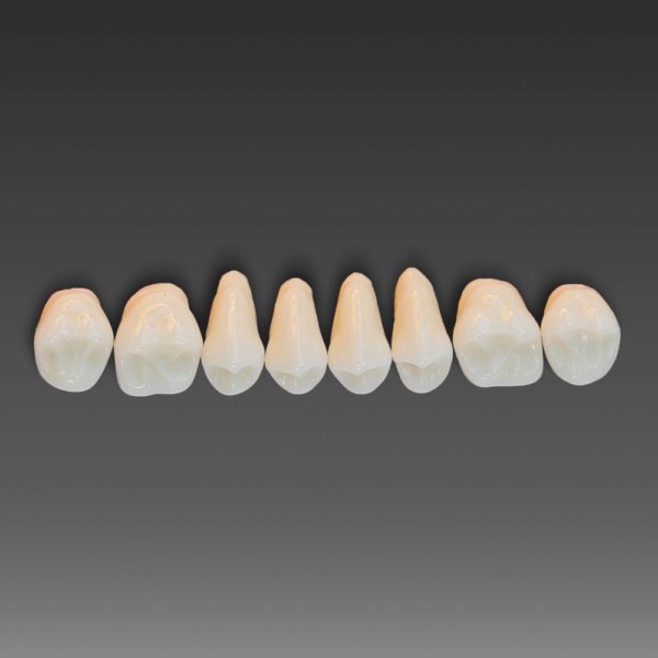 Dientes De Resina Acrílica, altamente resistente a las fuerzas masticatorias en variedad de colores, formas y tamaños.